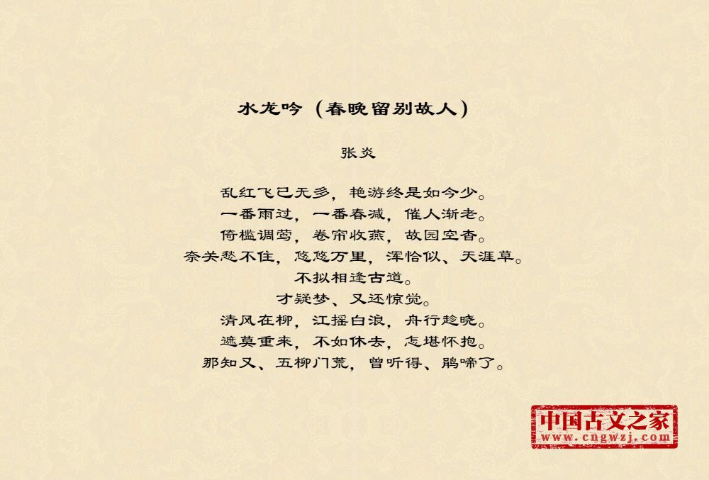 接叶巢莺,平波卷絮,断桥斜日归船。能几番游,看花又是明年。东风且伴蔷薇住,到蔷...