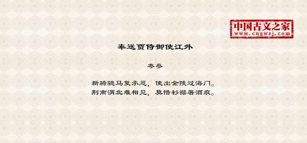岑参(cénshēn)(约715年—770年),汉族,原籍南阳(今属河南新野),迁居江陵(今属湖北),是唐代著名的边塞诗人,去世之时56岁。其诗歌富有