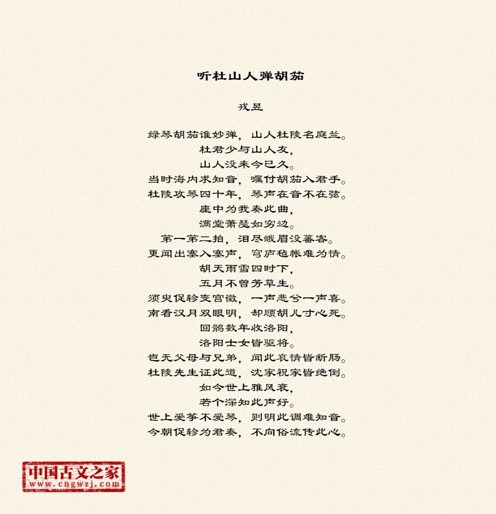 绿琴胡笳谁妙弹,山人杜陵名庭兰。