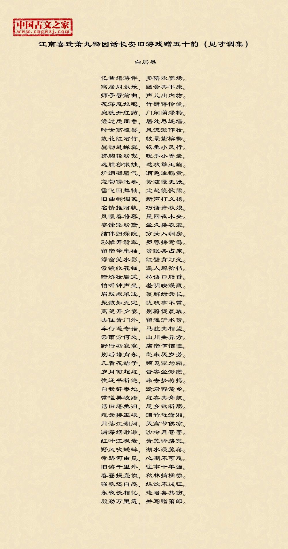 白居易(772~846),字乐天,晚年又号称香山居士,河南郑州新郑人,是我国唐代伟大的现实主义诗人,他的诗歌题材广泛,形式多样,语言平易通俗,有“诗魔