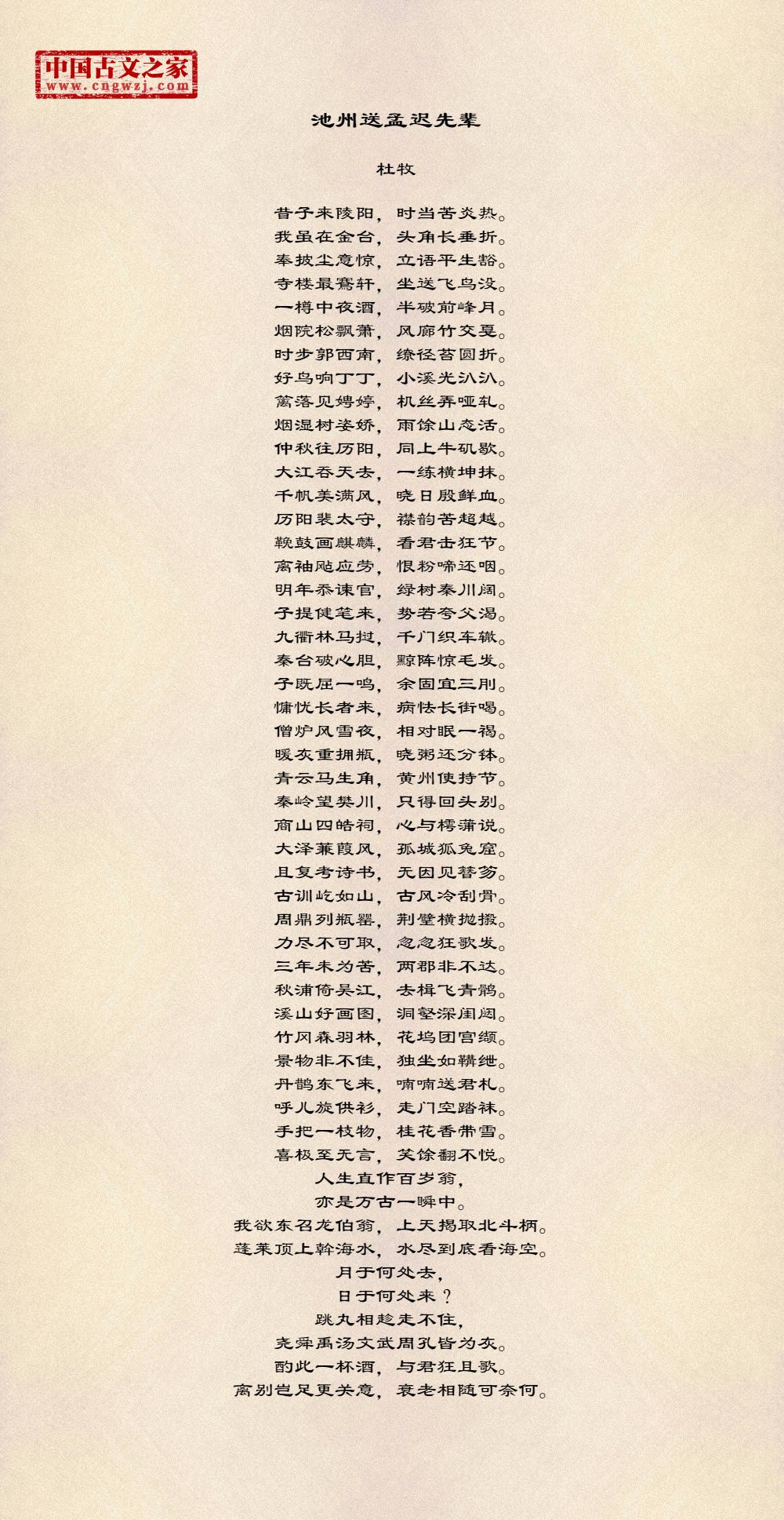 杜牧(公元803-约852年),字牧之,号樊川居士,汉族,京兆万年(今陕西西安)人,唐代诗人。杜牧人称“小杜”,以别于杜甫。与李商隐并称“小李杜”。因