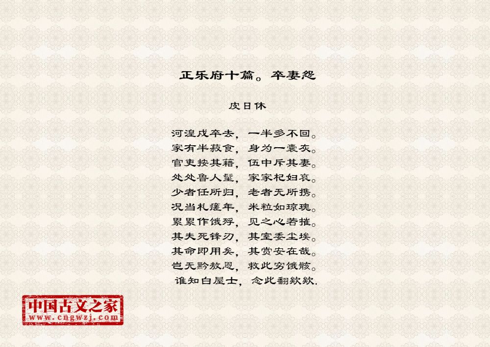 皮日休,字袭美,一字逸少,生于公元834至839年间,卒于公元902年以后。曾居住在鹿门山,自号鹿门子,又号间气布衣、醉吟先生。晚唐文学家、散文家,与
