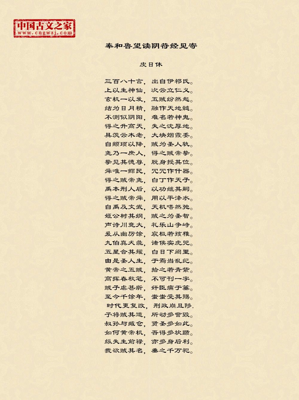 皮日休,字袭美,一字逸少,生于公元834至839年间,卒于公元902年以后。曾居住在鹿门山,自号鹿门子,又号间气布衣、醉吟先生。晚唐文学家、散文家,与