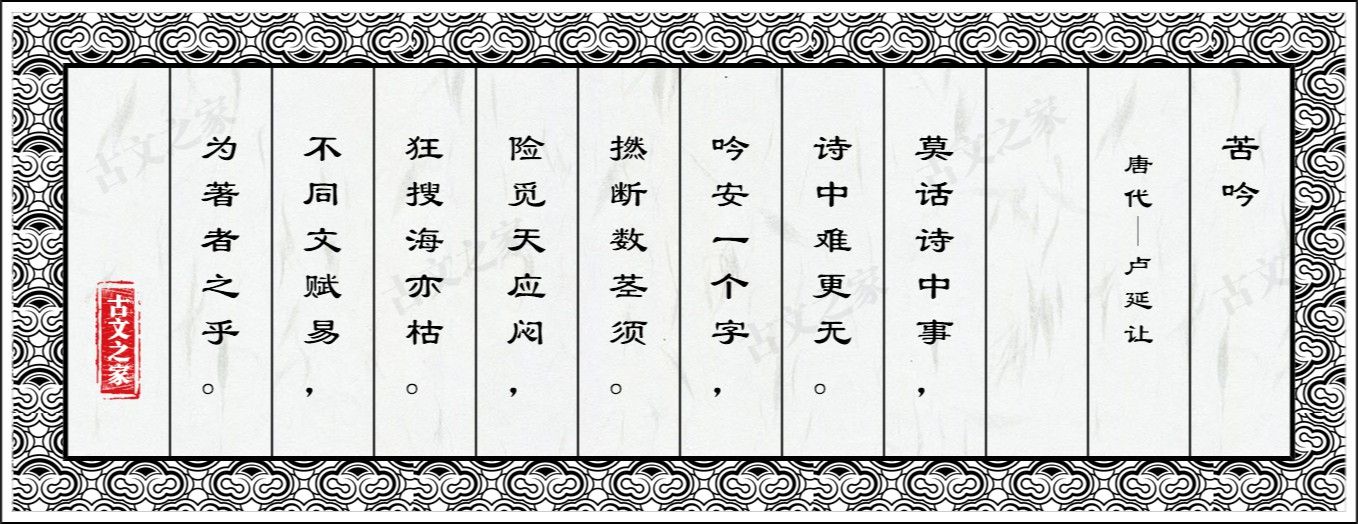 莫话诗中事,诗中难更无。 吟安一个字,撚断数茎须。 险觅天应闷,狂搜海亦枯。 ...