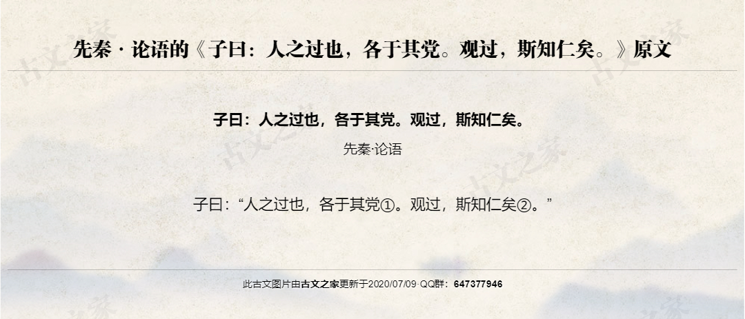 子曰:“人之过也,各于其党①。观过,斯知仁矣②。”