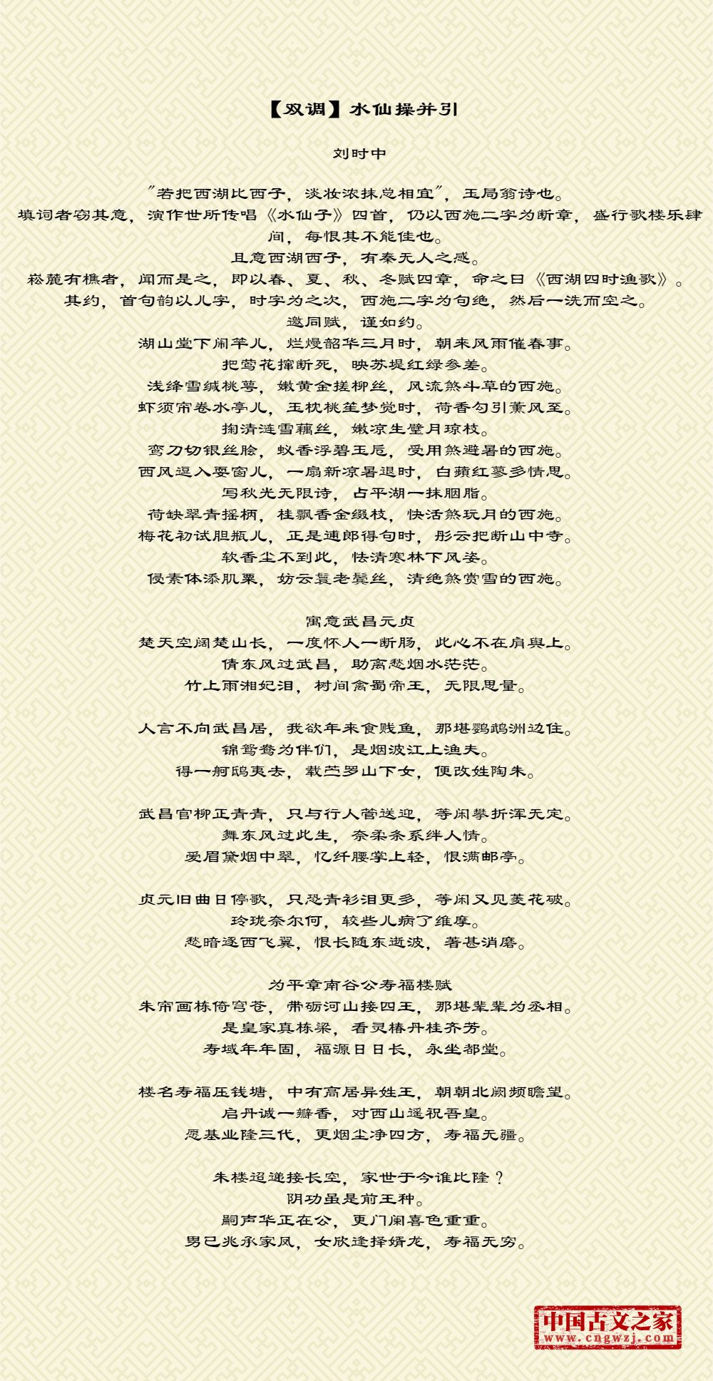 填词者窃其意,演作世所传唱《水仙子》四首,仍以西施二字为断章,盛行歌楼乐肆间,每恨其不能佳也。