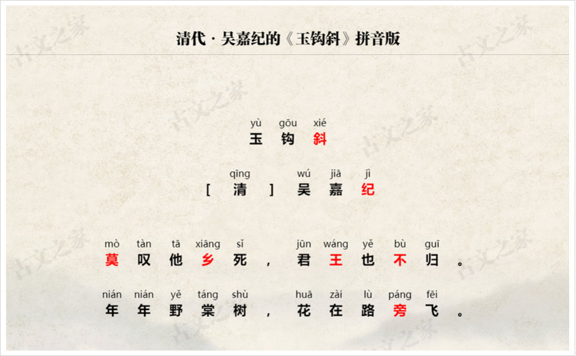 (我们坚持对每一篇古诗文进行人工查证并注音、我们亲自查证并回复来自您的每一次纠错,只为给您一份更为准确的拼音版本,请记住我们:古文之家)
