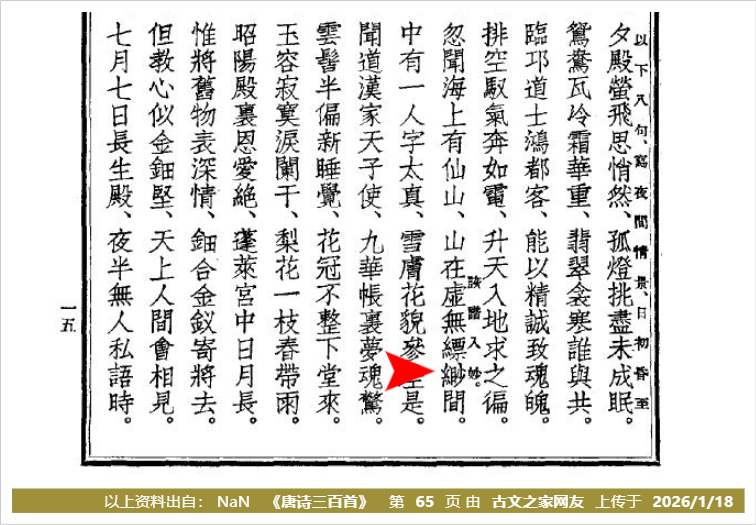 中有一人/字太真,雪肤花貌/参差是。