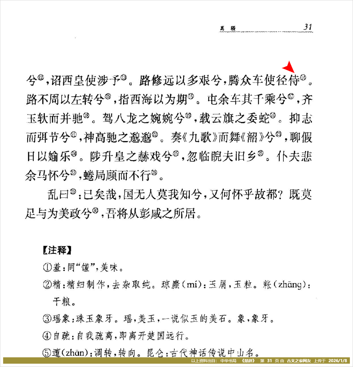 参考书籍:《楚辞》南京大学出版社,《楚辞》诵读本 中华书局,