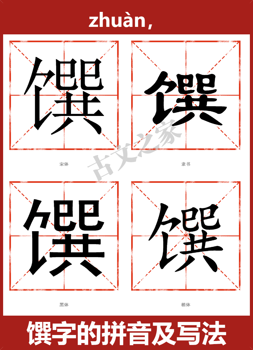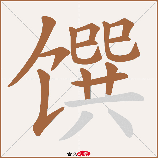 | 基础信息 | “馔”字,繁体为:饌,仓颉代码为:NVRUC,四角号码:27781,五笔输入法:QNNW,uicode代码为:U+9994,郑码为:OXEO,电码:-,规范字编号:5977, “馔”字,部首为:饣,总笔画:十五画,部外笔画:十二画,字形分解:饣巽(shixun),汉字构造:饣巳巳八,,汉字吉凶:-,属姓氏, 笔画顺序:ノフフフ一フフ一フ一丨丨一ノ丶, 笔画顺序读作:撇折折折横折折横折横竖竖横撇捺, “馔”字在在《康熙字典》位置:《康熙字典》第1425页 第024字, 宋本广韵中描述:-, 其它字典出处:[ 故训彙纂 ]:2530|2608.1,[ 康熙字典 ]:页1427第31, |