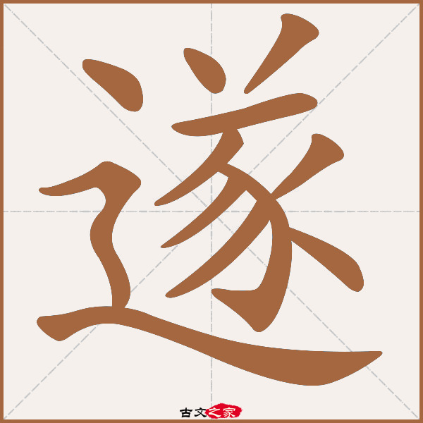基础信息 | “遂”字,繁体为:遂,仓颉代码为:YTPO,四角号码:38303,五笔输入法:UEPI,uicode代码为:U+9042,郑码为:UAGW,电码:-,规范字编号:2746, “遂”字,部首为:辶,总笔画:十二画,部外笔画:九画,字形分解:辶遂(zousui),汉字构造:丷豕辶,,汉字吉凶:吉,属姓氏, 笔画顺序:丶ノ一ノフノノノ丶丶フ丶, 笔画顺序读作:捺撇横撇折撇撇撇捺捺折捺, “遂”字在在《康熙字典》位置:《康熙字典》第1260页 第32字, 宋本广韵中描述:-, 其它字典出处:[ 古文字诂林 ]:02册,第12部,辵部,84,[ 故训彙纂 ]:2302|2380.1,[ 说文解字 ]:编号1174,第02卷下,辵部第84字,[ 康熙字典 ]:页1260第32, |